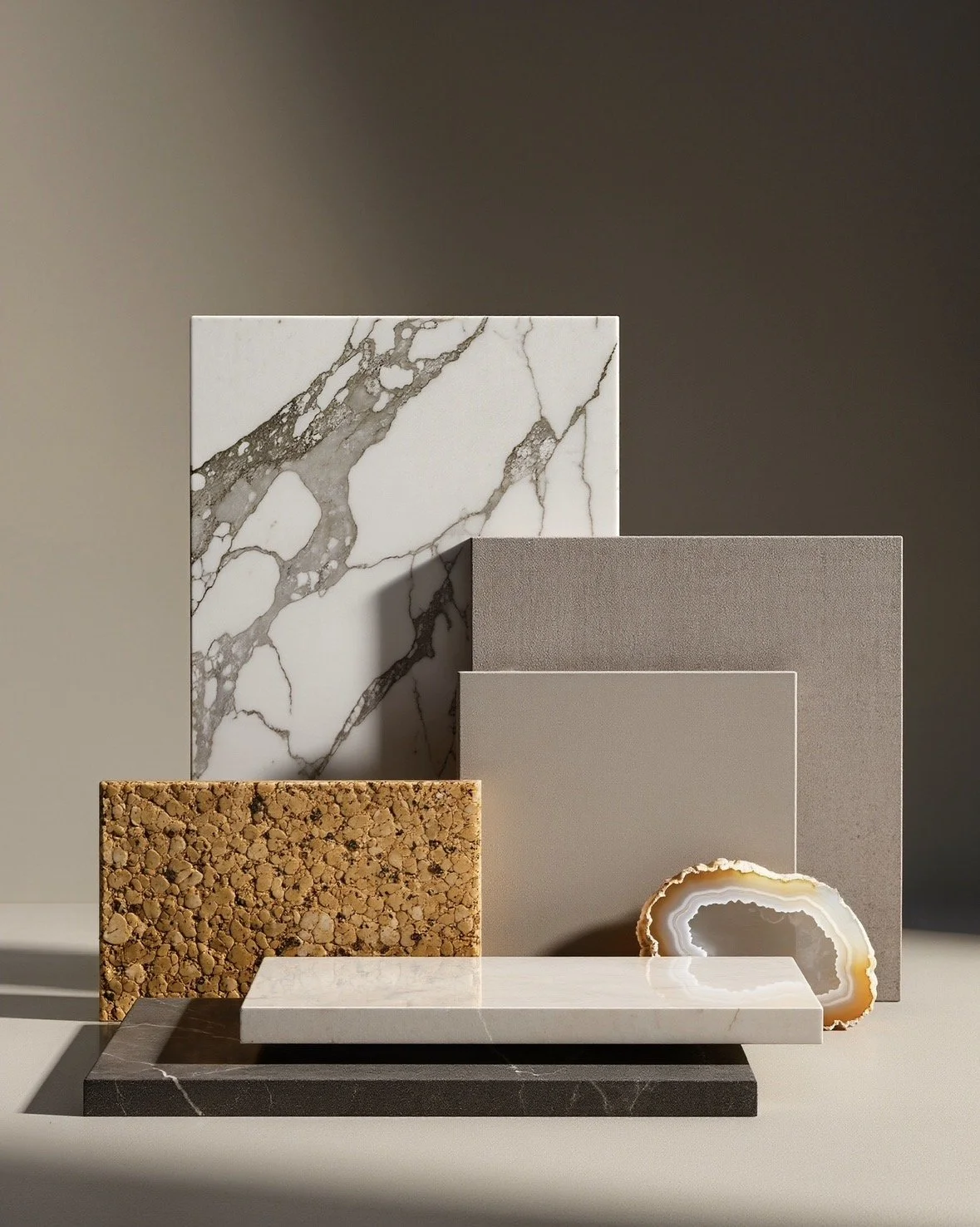 Italian stone and surface consultants. We source the finest marble, travertine, onyx, granite, porcelain stoneware, fibre cement and structural substrates directly from Italy’s most prestigious suppliers — delivering bespoke solutions to architects, developers and interior designers worldwide.